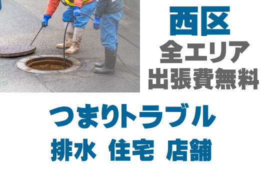 西区で下水つまり、トイレの溢れ、厨房やグリストラップつまりを修理を行っている会社です。