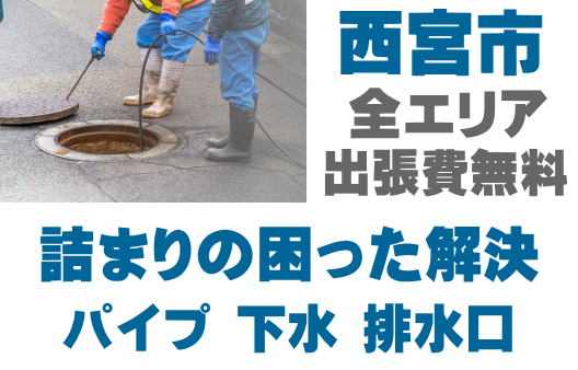 西宮市で排水つまり、トイレ詰まり、シンクつまりなどの排水トラブルはお任せください。店舗の厨房、グリストつまりも対応しております。配管つまり、マンホールの溢れ、下水の臭い、排水管のトラブルは最短15分到着!